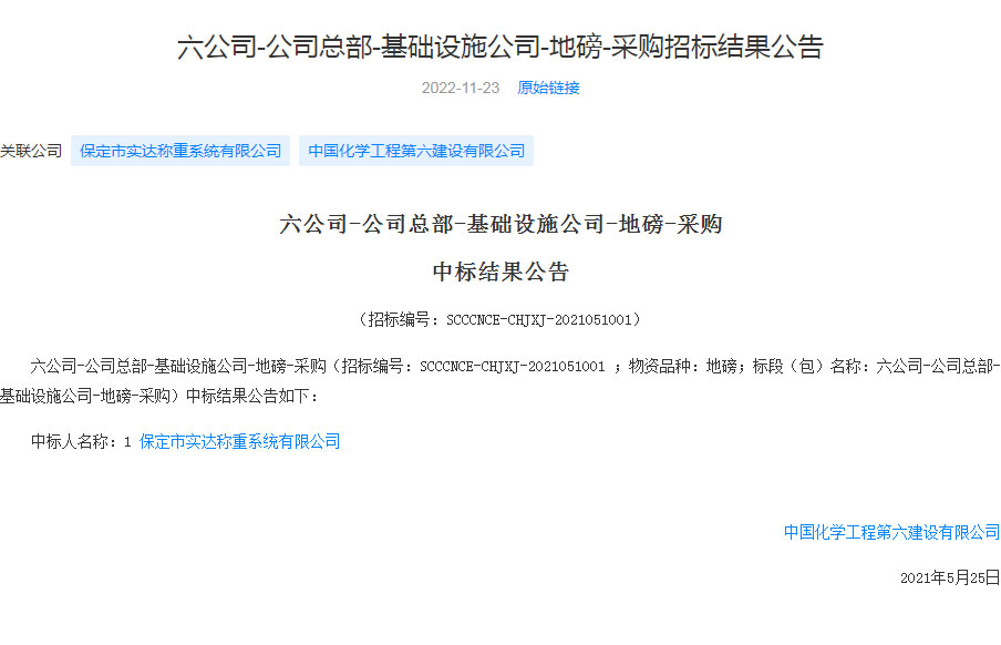 六公司-公司总部-基础设施公司-地磅-采购中标