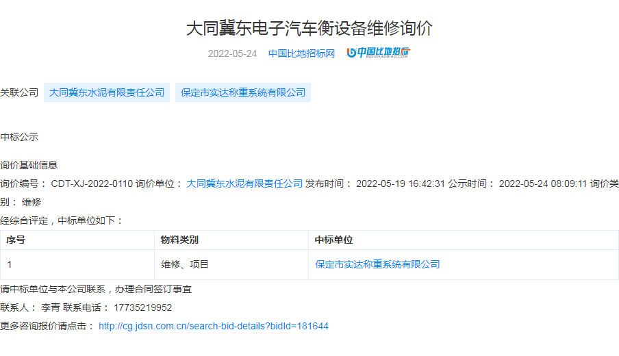大同冀东电子汽车衡设备维修中标