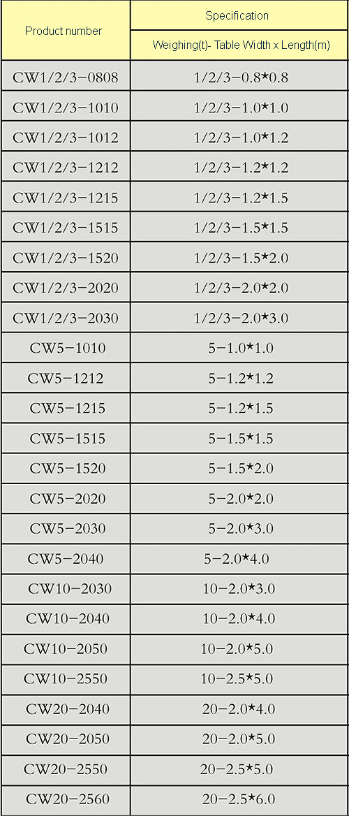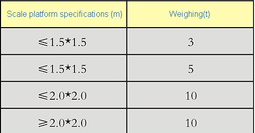 C) weighing platform specifications ≥ 2 * 3 meters: weighing ≤ 3t, countertops for the 6mm pattern steel plate; weighing> 3t, 8mm countertop flat steel plate.